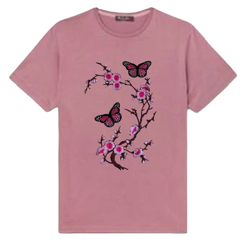 Bloesem Bloemen Vlinder Strijk Embleem Patch Set Roze